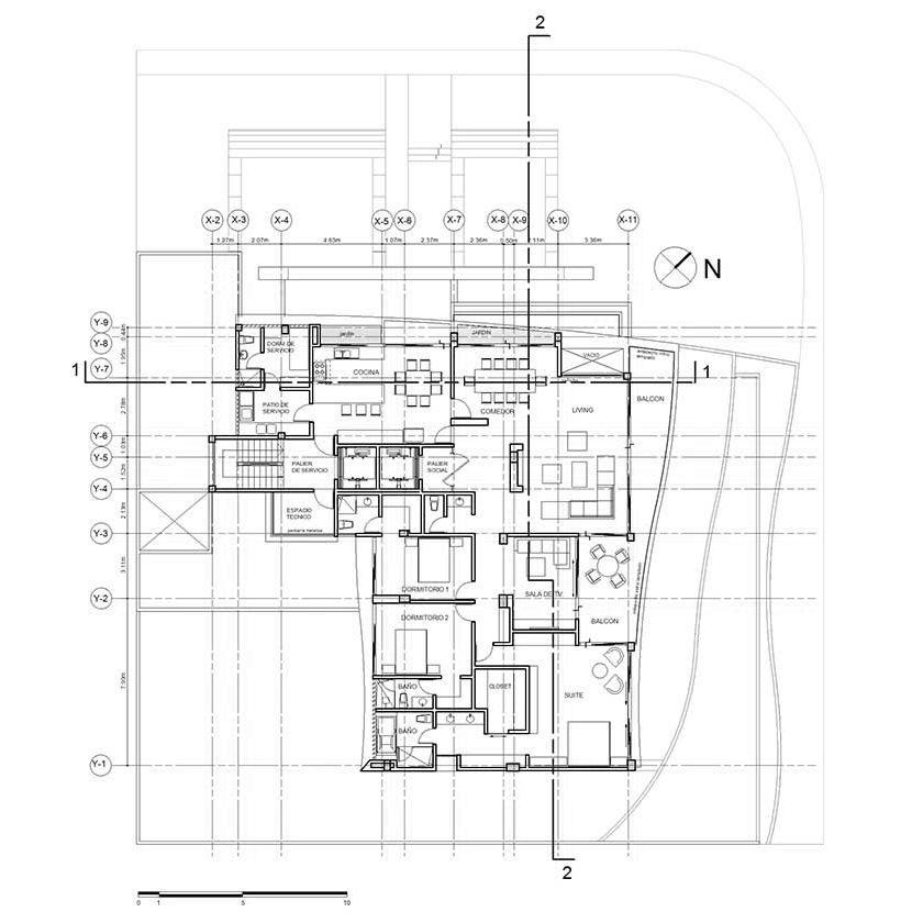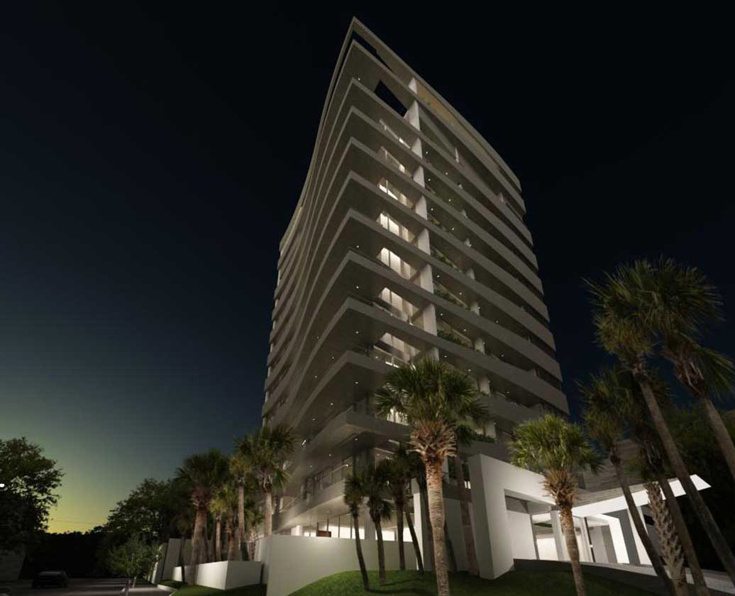 Vivienda multifamiliar de densidad media, de amplios departamentos. El proyecto se adapta una estructura inicial muy rígida y sin definición y la transforma en un volumen con balcones de ondas sinuosas para hacer una esquina más agradable y soportable visualmente, en medio de uno de los barrios residenciales de mayor nivel socio-económico en la ciudad. La torre, sin necesidad de ser suntuosa u ostentosa, tiene personalidad y es amigable con su entorno.