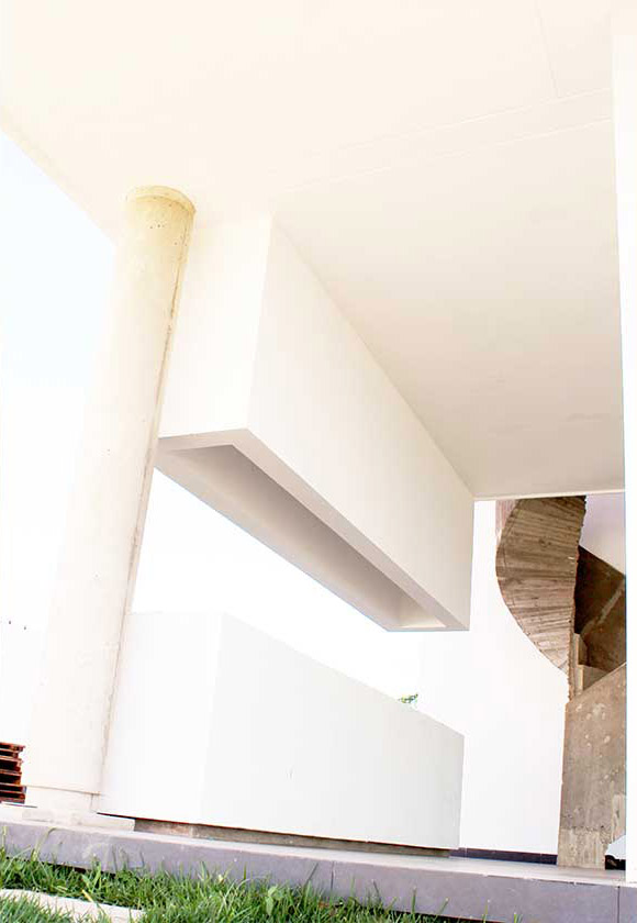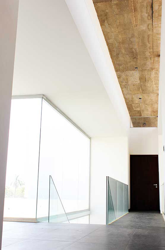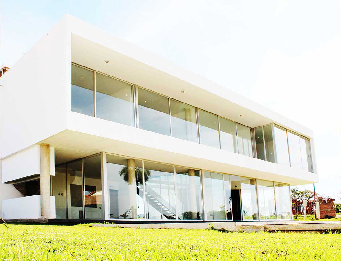 La idea base es la orientación. Volúmenes ciegos hacia el oeste y espacios con ventanales abiertos hacia el norte donde se disfrutara de las brisas y las buenas vistas que posee esta urbanización de tipo suburbana. La organización espacial es fluida y de espacios amplios y abiertos. Un vacío con doble altura en el corazón de la casa, donde además está la grada principal que vincula, articula e ilumina los espacios, gracias a los amplios ventanales orientados norte – sur. La característica lineal se acentúa con el encastre de los dos volúmenes para formar uno solo y que además generan un cinturón de luz indirecta en la parte superior. Con este elemento se puede disfrutar de espacios iluminados pero no soleados.