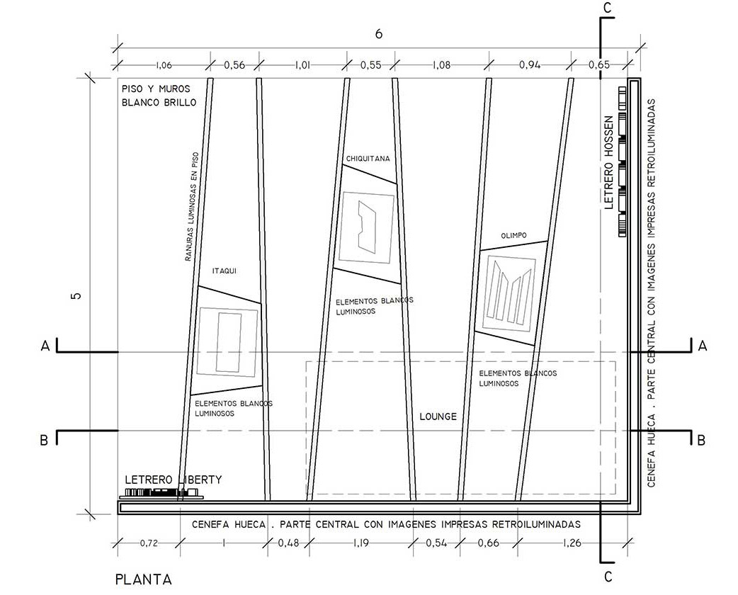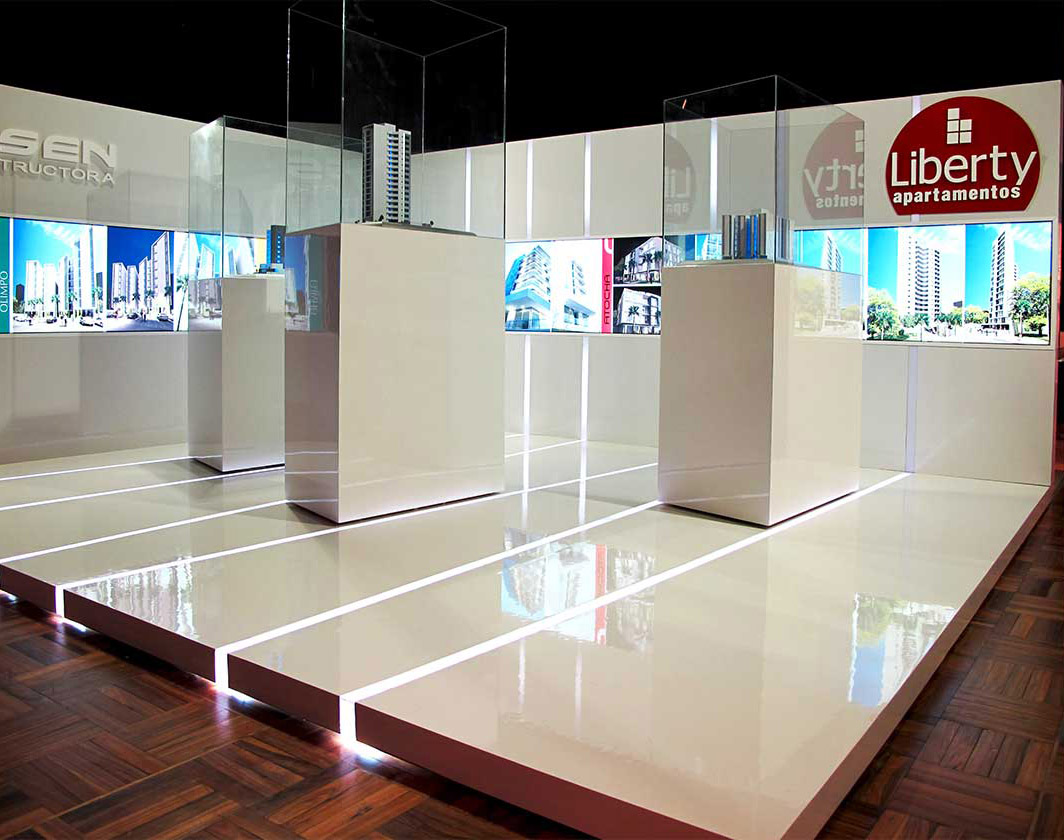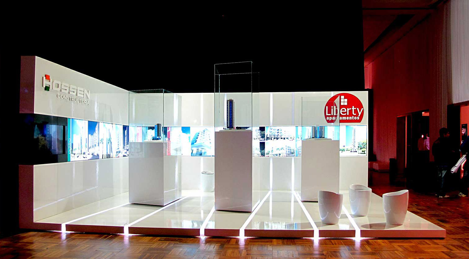 El espacio constituye un stand para la constructora HOSSEN y su marca inmobiliaria LIBERTY. La exposición exhibía las propuestas inmobiliarias de la constructora por lo que el espacio debía ser neutro y dinámico. El montaje se realizó en tres días.