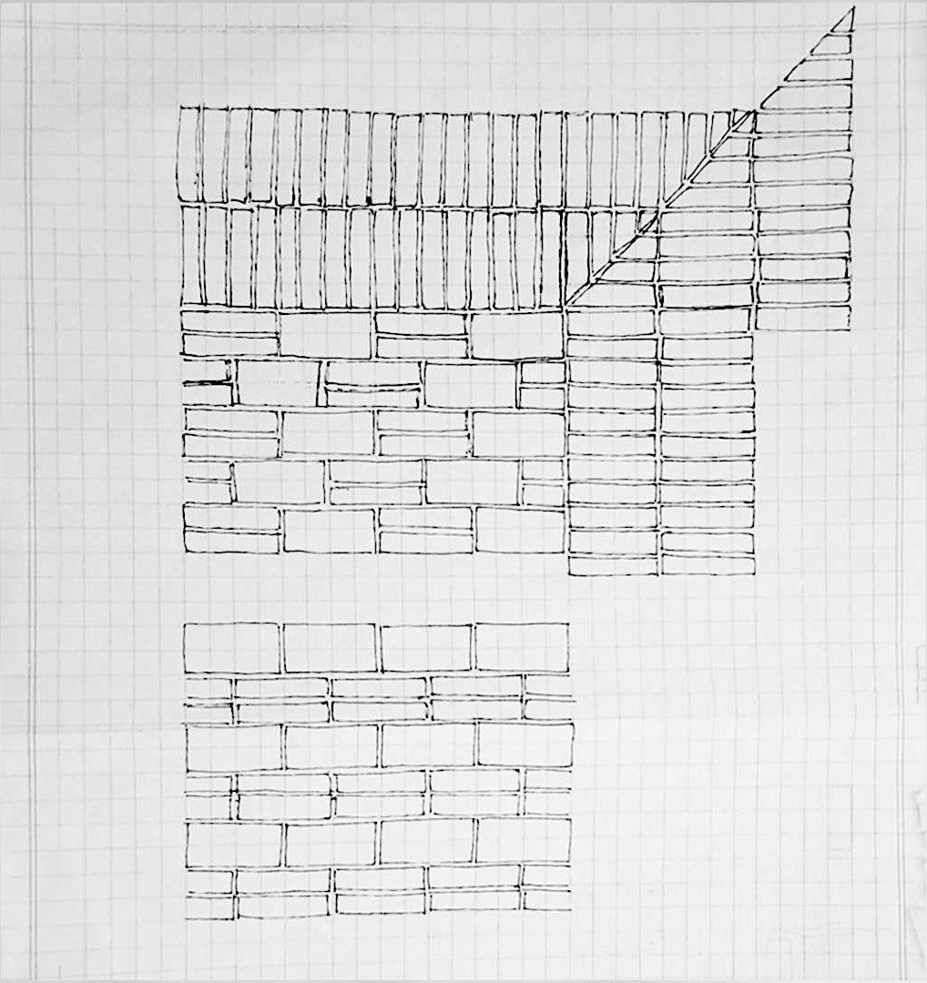 El patrón de la colocación de los ladrillos fue trabajado con el propietario, el Señor Eduardo Cardona, un arquitecto retirado y que reside en Cochabamba, nos brindó algunas ideas para la colocación de las piezas, basadas en su experiencia constructiva y en algunas casas tradicionales de su natal Cochabamba.