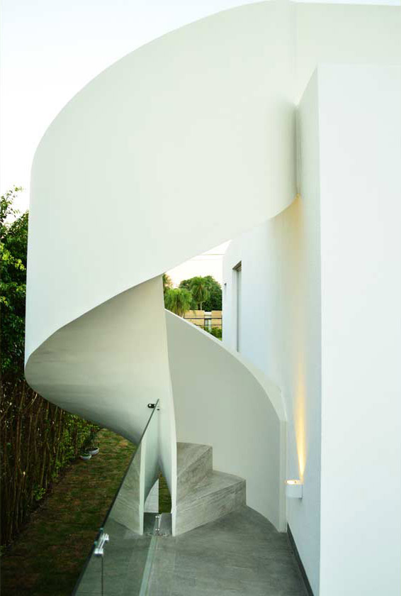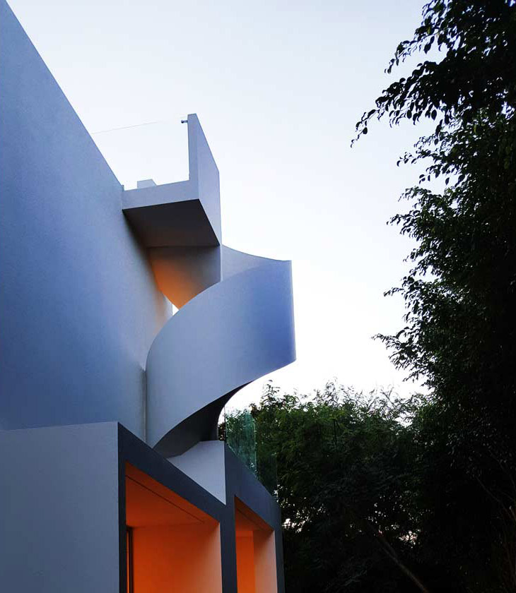 Compacta y unificada para lograr espacios vinculados y conectados. Al ser mas compacta se logra tener mayor espacio posterior donde en un futuro se construirá una ampliación. La casa permite el acceso a su terraza a través de una escalera helicoidal de proporción escultórica. La terraza ofrece una maravillosa vista de la ciudad tanto de día como de noche, gracias a la ubicación sub urbana alejada y elevada del terreno.